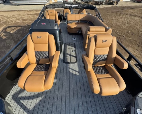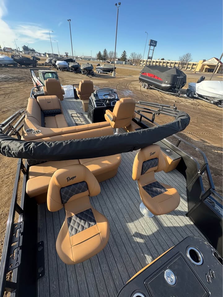 The 2026 Ranger 223F in Matte Black with Cognac interior delivers premium style, comfort, and performance in one sharp package.