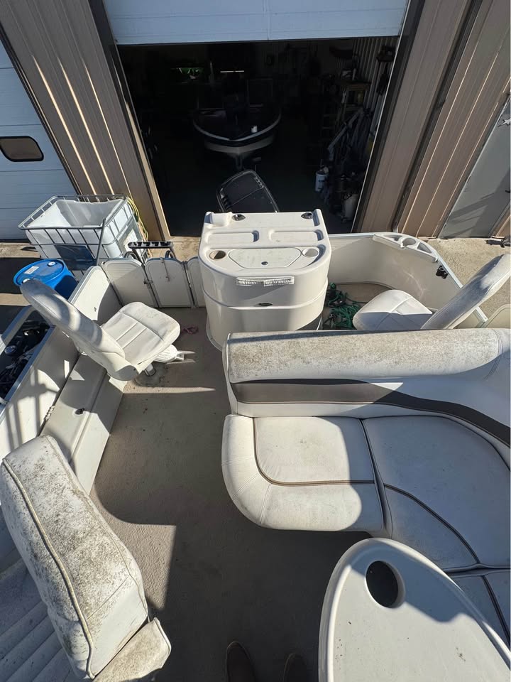 Very well setup for fishing/ cruising with 5 seats and a center bench style seating. On a consignment sale at DanOs Marine in Watertown Sd. Older gentleman no longer gets out boating. It does need a good scrubbing but everything is in tack and would clean up very nice. Motor was just serviced at our shop.